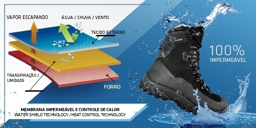 Membrana em sistema de meia com costuras seladas que garantem a impermeabilidade do seu calçado Palmilhado Boots.